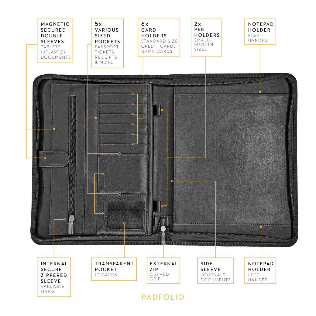 Vegan Leather Portfolio Folder with Business Card Holder Resumes Interview Notebook Document Storage & Tablet Sleeve